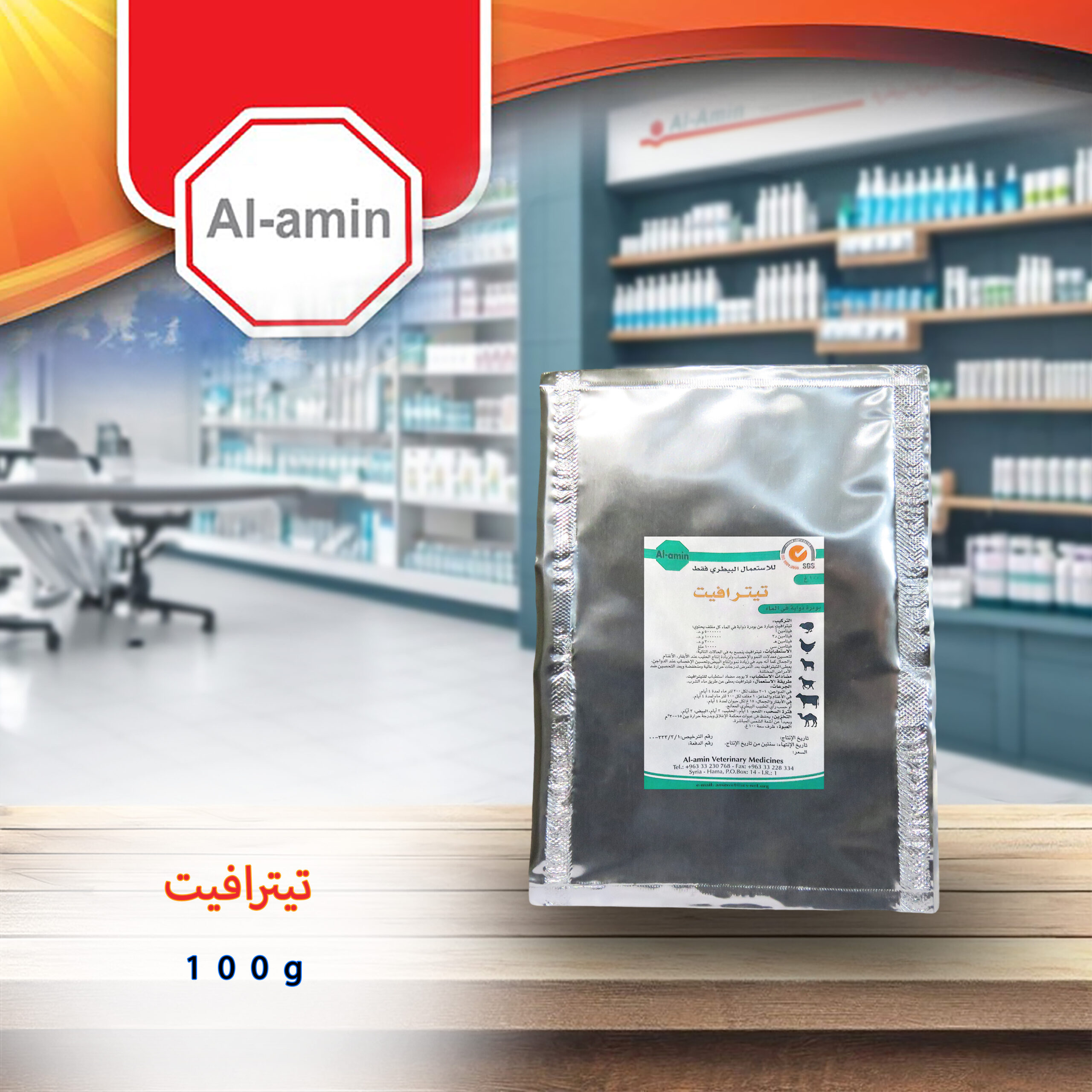 الأغنام والماعز : 100 غ لكل 100 ليتر لمدة 4-5 أيام