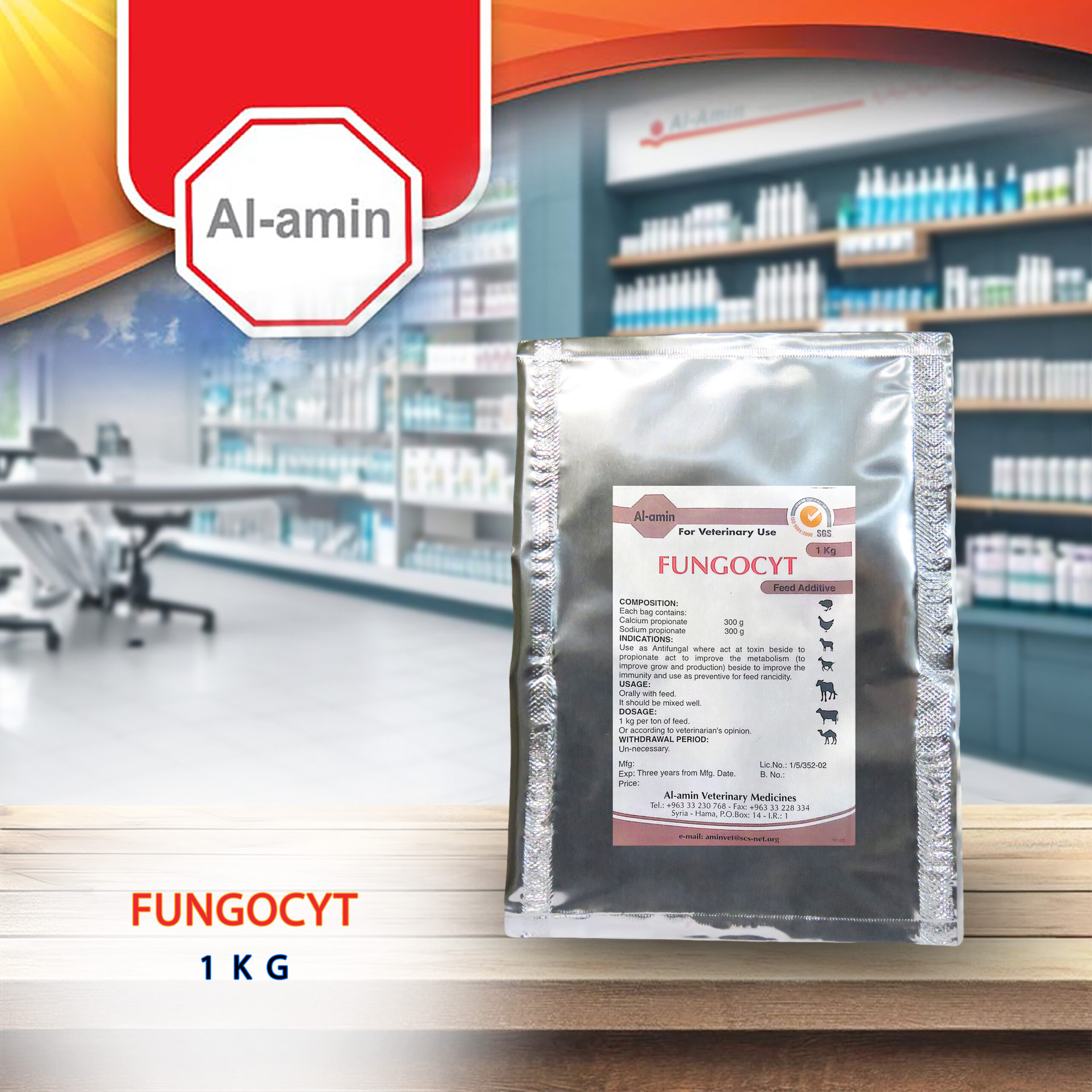 يوصف فانجوسايت في الوقاية من العدوى الجرثومية والفطرية ، ولزيادة معدلات النمو والإنتاج ، وللحفاظ على معدل التحويل ، ولحماية العلف من الزناخة والتعفن وبالتالي حماية الجهاز المناعي للحيوان .