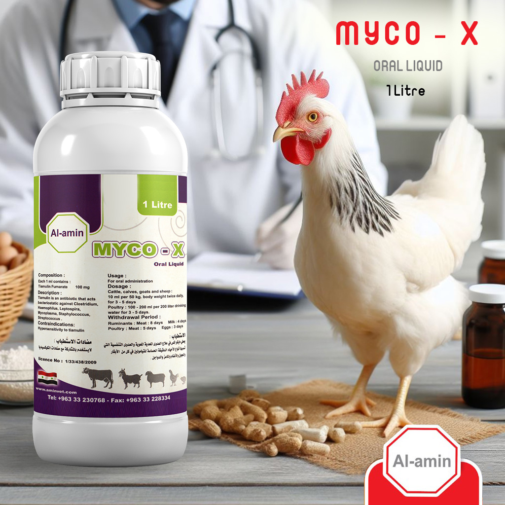 يعطي مايكو إكس في علاج العدوى المعدية المعوية والعدوى التنفسية التي تسببها أنواع الأحياء الدقيقة الحساسة للتيامولين في كل من الأبقار والعجول والأغنام والماعز والدواجن .