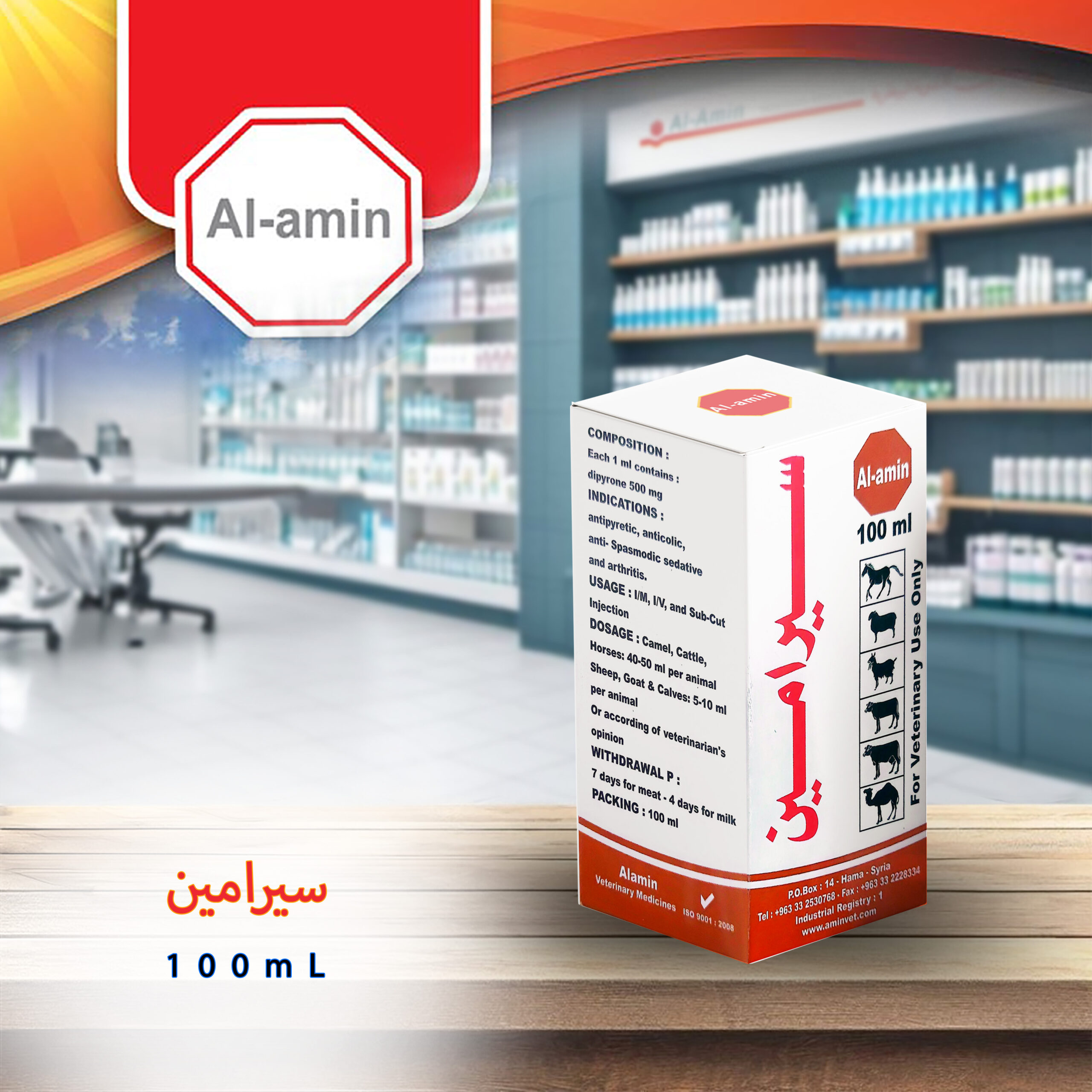Seramin is indicated as antipyretic, sedative, anti-spasmodic, anti-colic and in cases of arthritis in horses, cattle and sheep.